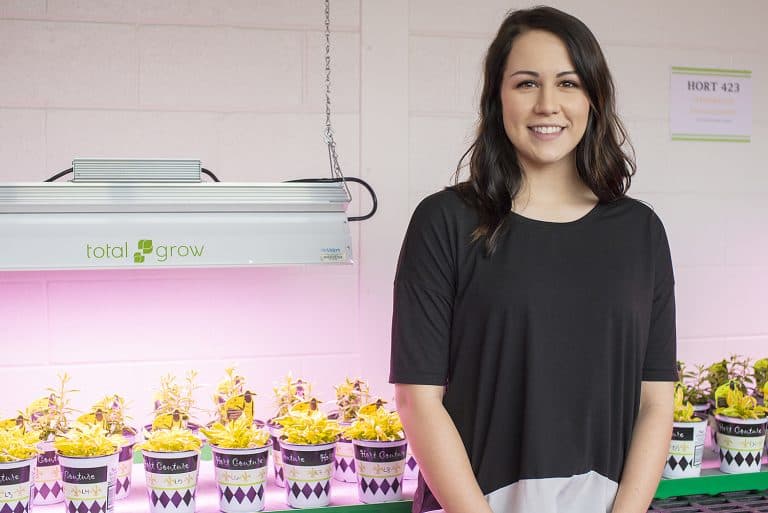 On March 31, 2017, the College of Agricultural Sciences held a ribbon-cutting ceremony to celebrate the opening of its LED light green space. Sharon Youck, a senior who will graduate with a plant and soil sciences degree in May, beamed with excitement as she explained her independent study.